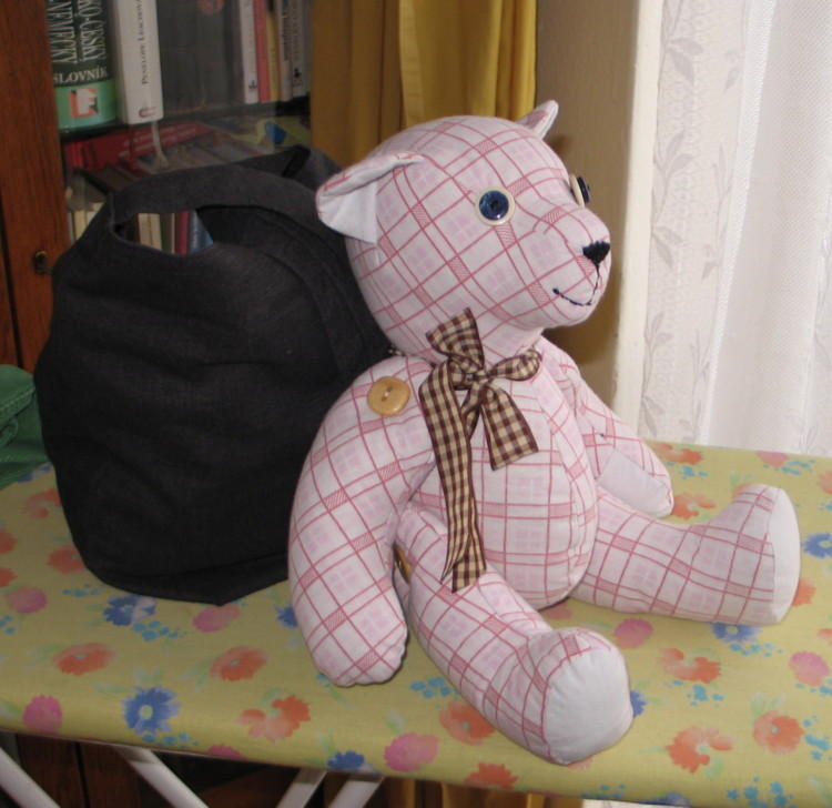 Přestože jsem látku podžehlila pevným vizelínem, stejně je chatrná, takže medvídek dle mého názoru dlouho nevydrží.. :-(